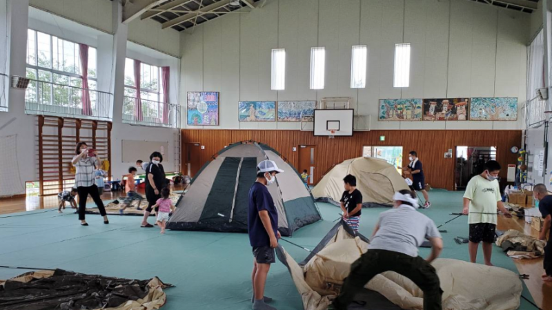 8月20日(土)、21日(日)の2日間、上戸青年福祉会様、上戸公民館様の御世話で、防災キャンプが行われました。あいにくの雨で、グラウンドでテントを張ることは出来ませんでしたが、体育館の中に、しっかりテントを設営できました。防災キャンプの名の通り、便利な道具等はあえて使わず、限られたもので工夫していく大切さを学びました。子供達は、テントの設営方法等、様々な説明を真剣に聞いていました。このキャンプで、本当に沢山のことを吸収し、一回りも二回りも大きくなったことと思います。保護者の皆様方をはじめ、お世話いただいた方々に深く感謝を申し上げます。