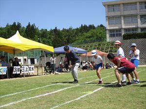5月18日(土)に市営陸上競技場で運動会を行いました。天気や、初めての場所であるということや、電源のことや、トイレのことや、荷物の輸送のことなど、いろいろ心配はありましたが、なんとかなりました。芝生の上で競技ができたのも、よかったです。子どもたちは、練習の成果を十分に発揮することができていました。会場に来ていた全ての人に元気を届けることができました。もっとたくさんの上戸町の人たちに見てもらいたかったです。運動会終了後に、緊急時の「児童引き渡し訓練」も行いました。
