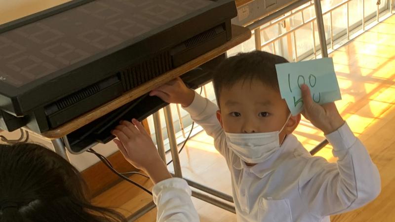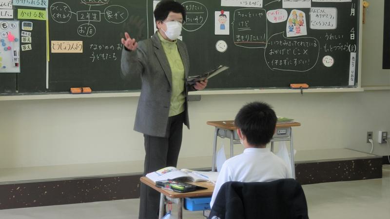 他の学年の授業を子供達が見に行く、「児童相互授業参観」を行いました。前回は5・6年生の複式算数授業を、他の学年が見に行きました。今回は、1年生の算数の授業でした。1年生は、沢山の参観者を前に、緊張した部分もありましたが、しっかりとした声で、ペアでの教え合い、黒板の前での発表をしていました。きっと、大きな自信になったことでしょう。そして、参観した児童も、1年生の頑張る姿に、多くの刺激をもらえたようです。1年生の皆さん、頑張る姿を見せてくれてありがとう!