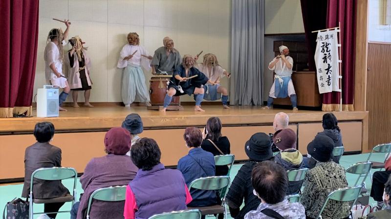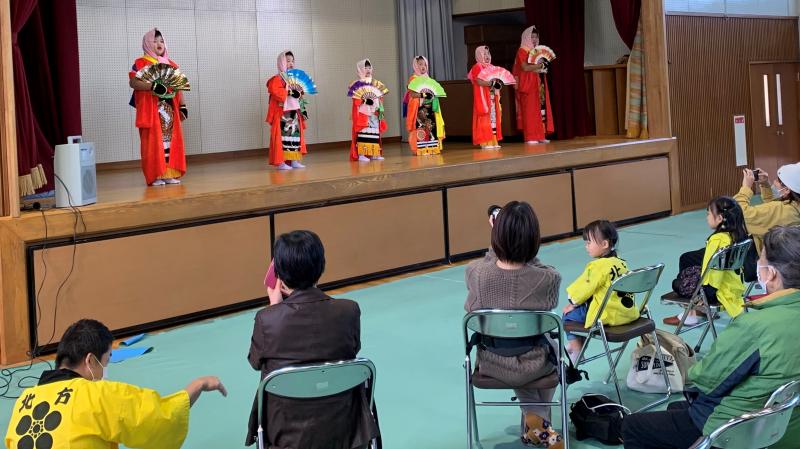11月6日、上戸小PTAバザー、上戸町文化祭が開かれました。お天気にも恵まれました。バザーは、多くの方々にご協力いただき、集まった大切な品々で賑やかでした。また、文化祭では、特別バージョンの龍神太鼓等に引き続き、本校児童6名による、きゃらげの披露も行われました。お祭りの時と同じように、お化粧をし、衣装をつけた、本番さながらのきゃらげは、アンコールまでいただき、大いに盛り上がりました。上戸地区が一つになり、素敵な時となりました。お世話いただいたすべての方々、本当にお疲れさまでした。
