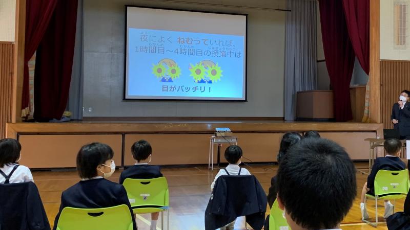 本日、講師をお招きし、全校児童を対象に「睡眠講座」を開きました。「睡眠」の大切さについて、体操やクイズなどを交えて、わかりやすく、丁寧にお話ししてもらいました。子供達は楽しみながら「睡眠」の大切さをしっかり学ぶことが出来、「睡眠の大切さがよくわかりました」「これからは9時までに寝ようと思います」等の感想を発表していました。とても有意義な時間となりました。本日の講座をお世話いただいた方々に心より感謝申し上げます。
