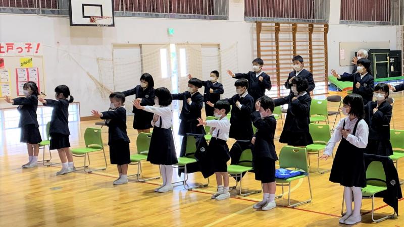 先日より、なわ跳びチャレンジが始まっていますが、チーム(縦割り班)による、なわ跳びチャレンジ、「8の字跳び」もスタートしました。皆、リズミカルに跳んでいます!1年生は、勿論初めてですが、上級生に教えてもらいながら頑張っています。8の字跳びは息を合わせることが大切です。上戸っ子、ファイトです!