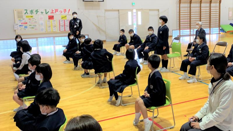 11月20日、珠洲市子ども大会が開かれ、本校5・6年生が参加しました。今回は本校児童が司会の大役を任されましたが、大きく、はっきりとした聞きやすい声での堂々とした司会ぶりで誠に見事でした。子ども大会では、市内の5・6年生が10のチームに分かれ、カードを使った自己紹介の後、とっても楽しいゲーム(「床の上に置かれた輪の中に、テニスボールを転がして入る数を競う」「テーマ毎に事務局が用意したワードを予想してあてる」「新聞紙を丸めてタワーをつくりその高さを競う」「じゃんけん列車」)で得点を競いました。その結果、本校6年生が入っていたチームが、見事優勝しました(5年生が入っていたチームも大健闘でした)!順位に関係なく、とてもとても楽しい時間を過ごすことが出来ました。お世話いただいた方々、本当に有り難うございました。