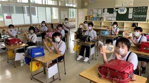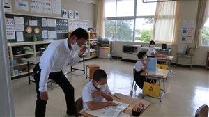 7月2日。本校に、懐かしく、嬉しい方がおいでました。前校長先生、多賀忠雄先生です。すらりとした姿には更に磨きがかかり、優しいまなざし、ひきこまれる笑顔は以前のままで。久しぶりの再会に驚きながらも、とにかく子供達は喜んでいました。いつも以上にピンと手を挙げ、成長した自分の姿を精一杯見てもらおうと張り切っていました。「上戸小学校が教員生活最後の学校で本当に良かった。」忘れられない多賀先生のお言葉です。先生からバトンを渡された上戸小学校。保護者、地域の皆様と手を携えながら、すこやかな子を育めるよう、頑張っていきたいと思います。多賀先生、またのご来校を心よりお待ちしております!(全校児童・職員へのお土産として、いも菓子をいただきました。また、1枚目の写真は、お顔を見せていただくために、ソーシャルディスタンスに十分気を付け、一瞬だけマスクを外して撮影させていただきました。)