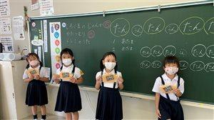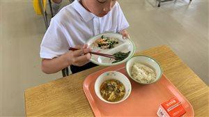 1・2年生が体育館の床の雑巾がけをしてくれました。しかし、雑巾がけは大変な作業です。小さな子は雑巾を絞るのも大仕事。やっと絞れても、普段殆どしない中腰の姿勢で、体育館の端から端へ雑巾がけするのも、やっぱり大仕事。元気な1・2年生も、さすがに疲れたようでしたが、今日は「トマト給食」。地元産の美味しいトマトと、しっかり冷やされたうどん、ご飯の進むキムチ炒めを食べて、また元気になってくれたことでしょう。