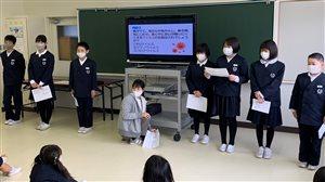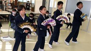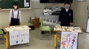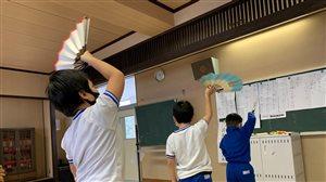 組曲の練習は着実に進んでいます。「きゃらげ」を例にとると、昨年のビデオを参考に、扇を持っての練習に入っています。今年度は2年生3名のきゃらげですが、3人ともやる気満々で頼もしい限りです。また、先日の児童朝会では、委員会委の発表がありました。図書・放送委員会は、読書で頑張った人の表彰等、保健委員会からは、感染症に関するクイズが出されました。どちらも2学期の最後にふさわしい内容でした。
