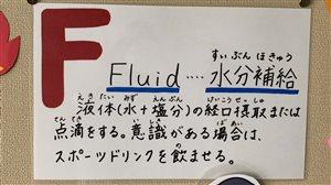 Fluid(水分補給) Ice(冷却) Rest(安静) Emergency(緊急:119番)