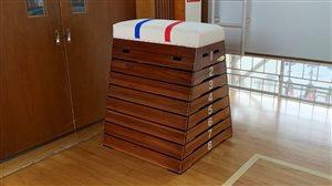 学校に新しい跳箱が届きました。8段です。手をつく位置を決めやすいように、青と赤の鮮やかなラインも入っています。跳箱運動を含めた器械運動は2学期実施予定です。新しい跳箱での、オリンピックに負けない素晴らしい演技を期待したいと思います。