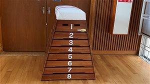 2学期の器械運動、マット運動で使う予定の「回りやすいマット」をご紹介します。ご覧になってわかるように、スロープになったマットで、前転や後転がしやすくなっています。回るコツをつかみやすいと思います。そして向日葵。先日お伝えしたように、あと1本しかありませんが、とても綺麗な花を咲かせてくれています。明日は登校日。花が少々重くて下を向いてはいますが、見事な咲き具合で子供達を迎えてくれそうです。