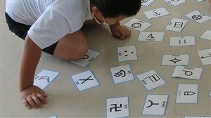 3年生社会。地図記号を学んでいます。この地図記号を覚えるのはなかなかに大変です。しかし、今回3年生は、先生自作の「地図記号カルタ」でとっても楽しく覚えています。体の全神経を集中させてカルタを見つめる様は、見ている側にも心地よき緊張感が伝わってきます。すぐに「地図記号博士」が3名誕生しそうです!