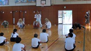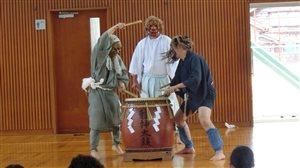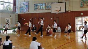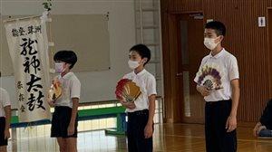 龍神太鼓保存会の方々が、お忙しい中、本校児童達の前で、勇壮なる龍神太鼓を披露して下さいました。ライブならではの迫力、エネルギーです。子供達は、まばたき一つせず見入っていました。太鼓の前にきゃらげの披露も行われました。この時に備えて、子供達が自主的に練習しました。地域の伝統文化を誇りに、そして大事に思う心が育っていることが窺われます。この日の太鼓で、そういった心が更に豊かになったことと思います。保存会の皆様方、本当にありがとうございました。