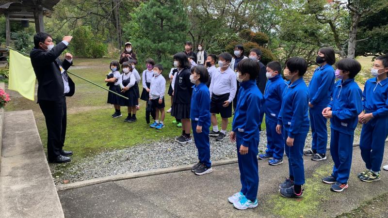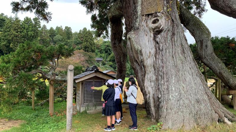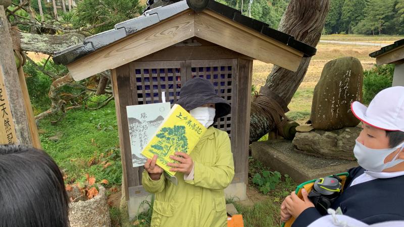 4年生が、有名な高照寺の倒さ杉(さかさスギ)の説明を聞きに行ってきました。倒さ杉に行くのは初めてではありませんが、本格的な説明を聞くのは「初」です。この日は、高照寺の方に説明をお願いしました。本当にわかりやすく、丁寧にお話下さり、お陰で今まで知らなったことが沢山あったことがわかりました。これをきっかけに、益々郷土への興味、愛着が増すことと思います。お忙しい中、有難うございました。
