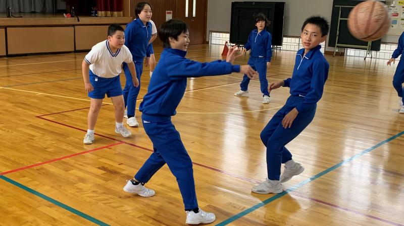 今日のクラブは、2つのクラブが合同で、バスケットボールをしました。赤、青、黄色の3チームに分かれて行いました。本校は、現在市内のバスケットチームに所属している子、前にバスケットボールをやっていた子、ほぼ未経験の子と色々ですが、それぞれの持ち味を発揮して、大盛り上がりの時間となりました。チームで力を合わせるというのは、やはりとても楽しいようです。
