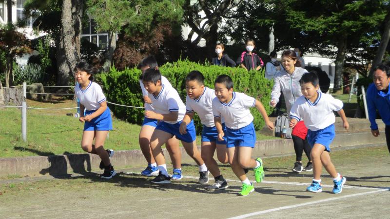10月28日。絶好のコンディションに恵まれ、持久走大会が行われました。どの子の走りも本当に素晴らしかったです。開会式で校長先生から「記憶に残る走りをしてほしい」という話がありましたが、まさにその通りの走りであったと思います。珠洲警察署様、上戸の子供を守る会の皆様方、保護者の皆様方におかれましては、見守り、伴走、応援等に多大なるご支援、ご協力をいただき本当にありがとうございました。