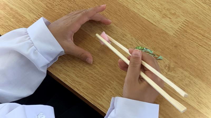 1年生が、お箸の持ち方を学びました。練習用の箸を使って、一からやってみました。本校では、今年度、「お箸検定」なるものを行う予定です。お豆をつまめたら〇級という具合にです。今日、早速お豆をつまめる子が出ました。箸の正しい持ち方は、鉛筆の正しい持ち方にもつながります。引き続き頑張ってほしいと思います。