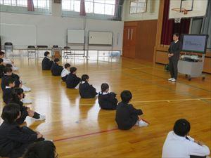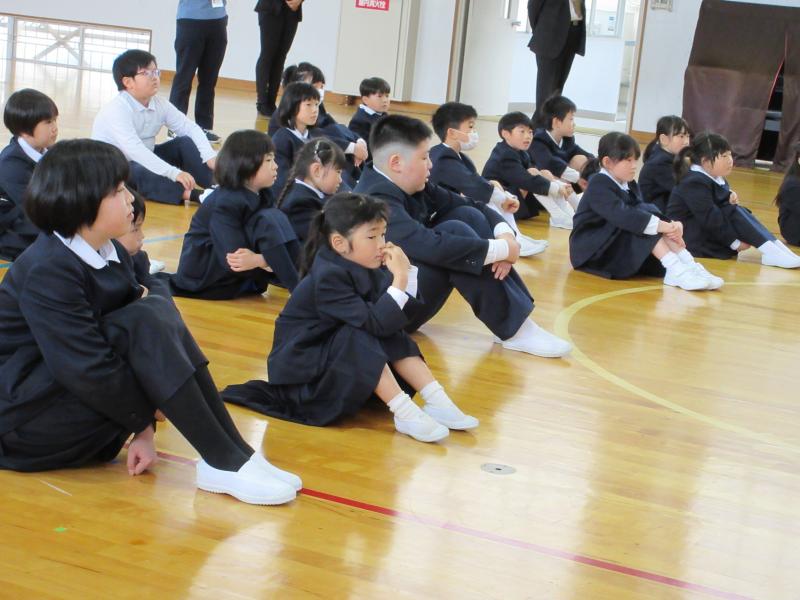 4月11日(火)に全校朝会がありました。始まる8時10分には全員が静かに並んでいました。「いじめはしてはいけない」ことについて話をしました。また、担当の先生から、学習ルールとクロムブックの使い方について説明がありました。