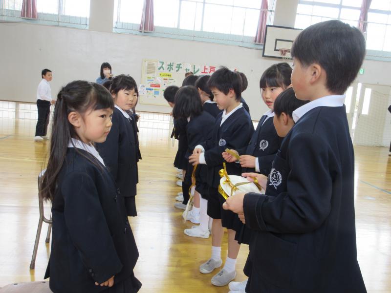 1年生を迎える会はとても楽しい時間となりました。1年生は、上手に自分の名前や自分のことを伝えていました。2・3・4年生は、1年生のために素敵なプレゼントを作成し、心を込めて渡していました。5・6年生は上戸っ子の絆が深まるように、この会を企画し、しっかりと運営していました。どの学年も凛々しく、そして楽しく活動する様子が見られ、心温まる時間となりました。これから、上戸っ子24名で力を合わせて頑張っていきましょう!