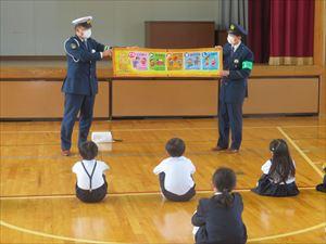 4月27日(木)に珠洲警察署の警察官を講師に招き、防犯教室と交通安全教室を行いました。まず、不審者対応の「いかのおすし」を復習し、「子ども110番の家」について確認しました。その後、グランドで1・2年生は「横断歩道の渡り方」3~5年生は「自転車の乗り方」について、講師の方からていねいに指導していただきました。行動制限がなくなるGWを目前に、とてもよい学びの機会となりました。珠洲署の皆様、ありがとうございました。
