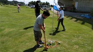7月3日、土曜日。天気に恵まれ、親子活動グラウンドゴルフが行われました。あちらこちらで歓声がこだまし、とても楽しい時間を過ごせました。笑顔、笑顔、笑顔でした。景品のプレゼントも、その中身と共に渡し方にも夫があり、子供達はすごく嬉しそうでした。お世話していただいた方々、本当にありがとうございました。親子活動終了後は二年振りとなる海水浴場設置。決して楽とは言えない作業でしたが、力を合わせて設営できました。今から喜ぶ子供達の顔が見えるようです。ご協力いただいた方々、本当にお疲れさまでした。