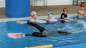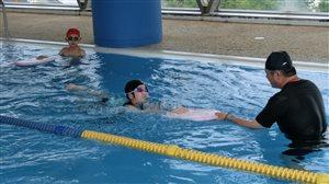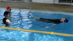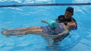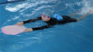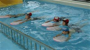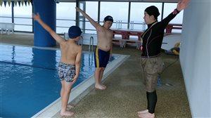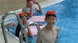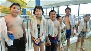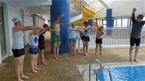 5.6年生もウェーブプールで水泳の学習を行いました。体の力を抜き、浮かぶということは、意外に結構難しいことですが、息継ぎの必要のない背面で浮く(要するに背泳ぎ)ことで、それがやりやすい児童もいます。全員、昨年度より確実に成長が見られました。6年生は、中学校へ行っても水泳に親しんでいってほしいと思います。