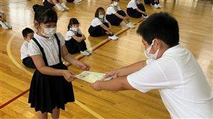 本日児童朝会がありました。今月の歌にはじまって、図書・放送委員会から本祭り関連の発表が行われました。本をたくさん読んだ児童への委員会からの表彰や、委員会手作りのしおりのプレゼント、寄贈された図書の紹介などがありました。読書は人の心を豊かにしてくれるといいます。これからもどんどん本を読んでほしいと思います。