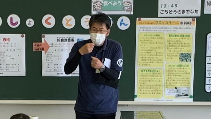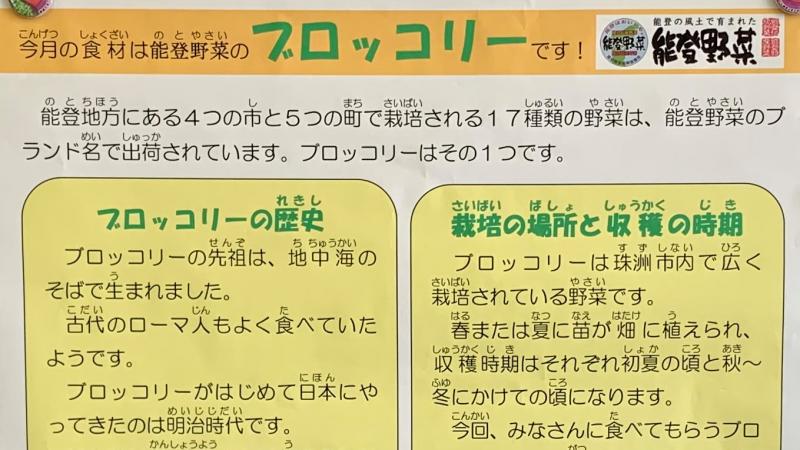 本日の給食は地元産の食材、ブロッコリーを使った「ブロッコリーの日」でした。ブロッコリー使用のメニューは「ブロッコリーのおかかマヨ」。このブロッコリーの説明のために、JA様が来て下さり、ブロッコリーのブツブツした部分は花のつぼみがたくさん集まったものである等、沢山の興味深いお話をしてくれました。そういったお話を伺った後での給食の味はまた格別だったようです。