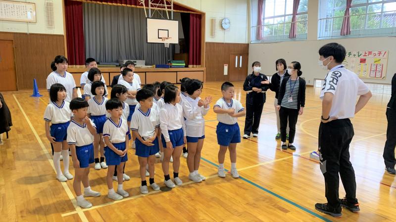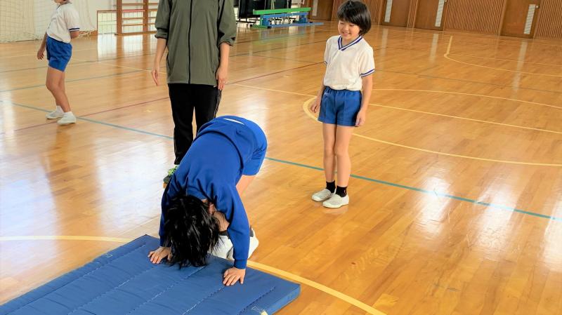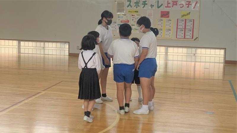 3連休明け。ニュースを3つお伝えします。1枚目は2年生教室から。一生懸命段ボール紙を赤く塗っていました。「赤い何か」をつくっているのです。この後の音読会に使うとのこと。後日お知らせできるかと思います。2枚目は昼休みの一コマ。ALTの先生が、子供達とドッジボールで遊んでくれました。子供達はとても喜んでいました。3枚目は3・4年生体育から。マット運動に取り組んでいました。「前転」を頑張っていました。真っすぐ、手をつかずにスムーズに起き上がるというのは、意外に難しいです。でもどの子も何度も繰り返して練習していました。今日も元気な上戸っ子でした。