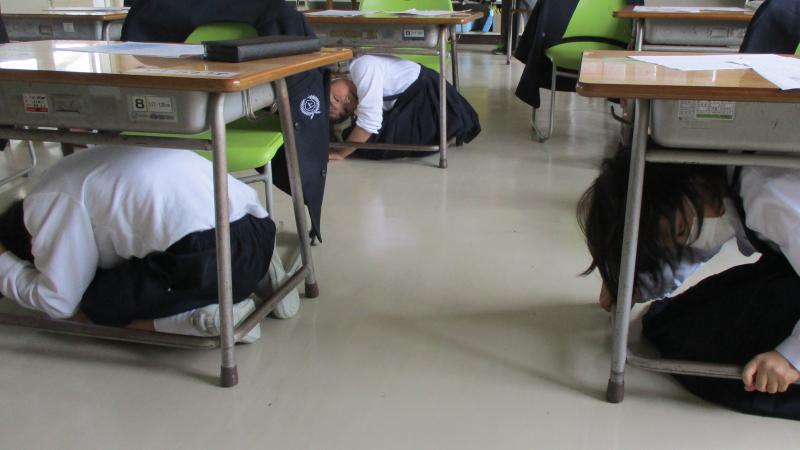 本日、地震が起き、その後校舎3階避難では対応できない津波が来るという想定で、避難訓練を行いました。津波発生の際の一次避難先は、本校舎3階ですが、それでも対応できない場合の二次避難先を、近くの高照寺さんにしてあります。高照寺までの距離はおよそ900m。結構な距離ですが、このところ、持久走大会の練習をしていることもあって、1年生も素晴らしい健脚ぶりを見せてくれました。訓練のまとめとして、校長より2つの力が大切という話がありました。災害から逃げ切る「体力」と、避難を決める「判断力」です。子供達は皆真剣に話を聞いていました。その姿は大変頼もしかったです。