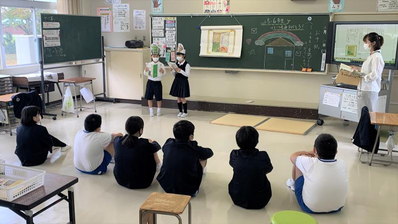 2年生が先週、今週と2週連続で音読劇「お手紙」を披露してくれました。先週は1年生、今日は5・6年生にです。2名とも、役になりきり、素晴らしい劇でした。1年生からも、5・6年生からも、見に来ていた職員からも、その素晴らしさを称える言葉をいっぱいもらい、すごく満足そうでした。先日、赤く段ボールを塗っていたのは、劇に登場するポストをつくっていたのです。音読劇の感想を書いてそのポストに入れることになっています。「お手紙」には、手紙を待ち焦がれる主人公が出てきますが、2年生の2人もポストを開けるのが、きっと、とても楽しみでしょうね。