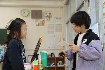 12月12日(金)の3限目は2年生が1年生とお家の方を招待しておもちゃランドを開きました。自分で考えたおもちゃで景品も用意してありました。1年生は色々なおもちゃで遊び、たくさんの景品をもらって笑顔で教室に戻っていきました。来て下さった保護者の皆様、ありがとうございました。また昼休みは全校に向けておもちゃランドを開き大盛況の2年生でした。