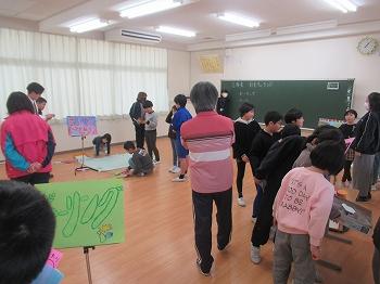 12月5日(金)の午前中に宇出津小学校体育館で宇出津小、松波小、小木小、鵜川小の4校の6年生による交流会が行われました。講師は国立能登青少年交流の家の職員の方でした。「仲間作りプログラム」ということで、誰とでもグループになり、1つのことを成し遂げるゲームをして楽しみました。「協力すると仲よくなれる」を合い言葉に、4校が交流しました。ゲームでは誰一人投げ出すことなく真剣に取り組み、いつの間にか盛り上がっていました。そして、45分があっという間に過ぎました。国立能登青少年交流の家の職員の方におかれましては、子どもたちが触れ合える楽しい時間を作って下さり、ありがとうございました。