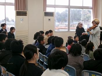 12月15日(月)4限目は、ヴァイオリン演奏会がありました。東松島ふるさと大使のヴァイオリニスト鹿嶋