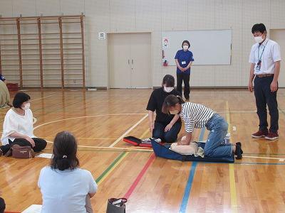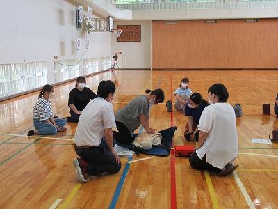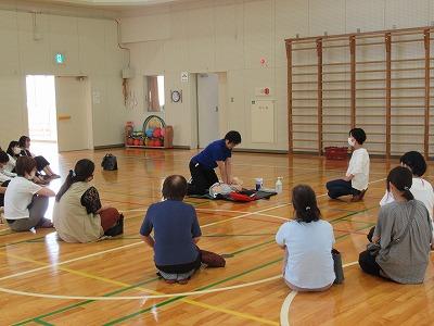 今回は、保護者対象に本校の養護教諭が講師となってAED講習会を開きました。いざというときに落ち着いてできるように「コール・プッシュ・プッシュ」の3つについて学びました。コールは人を呼ぶ、救急車を呼ぶ。プッシュは心臓マッサージとAED のスイッチを押すです。