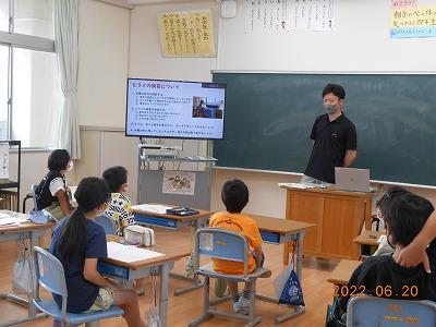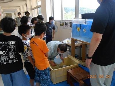 石川県栽培漁業ミニ体験教室として、今年も4年生がひらめの飼育を体験します。今日は石川県水産総合センターの梅本航太さんにひらめについて色々教えて頂いた後、7~8㎝のひらめ50匹を設置してもらった水槽に優しく入れました。子供達からは、「ひらめ食べてみたいな。」という意見もでました。今日から様子を見ながら飼育日誌を書いて育てていきます。2週間餌をやったり様子を観察しながら、7月4日に鵜川の辺田の浜から海へ放流する予定です。50匹全部放流できるように四年生の皆さんお世話をお願いします。