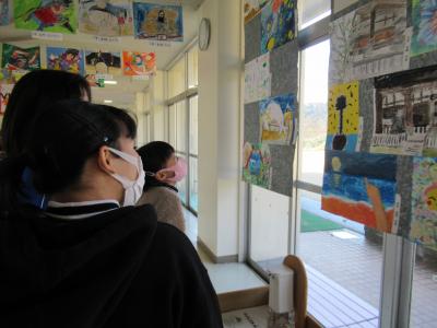 能登町の児童・生徒の図画作品が各学校に順番に巡回作品展としてやってきました。他の学校の子ども達の作品を見る子ことはとても刺激になります。みんな真剣な眼差しで見ていました。