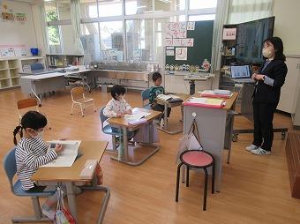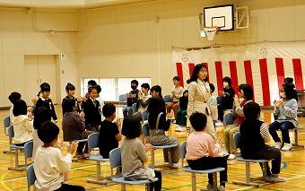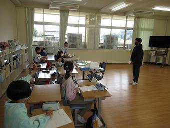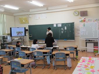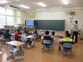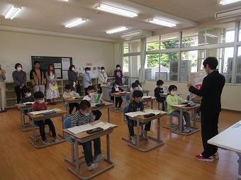 2月20日(火)、1年生国語「これはなんでしょう」の学習で、学校にあるもののクイズを考え、3人の先生を招待して、クイズ大会を行いました。答えの特徴となる質問をしたり、質問に答えたりすることでクイズ大会を楽しむことができました。