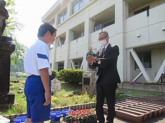 5月10日(水)、人権の花贈呈式がありました。贈呈されたサルビアの花言葉は「尊敬」「家族愛」です。花を飾ったり、植えたりする時は、それを見てくれる人にきれいだな!と思ってもらえるよう、また、心がなごむよう相手の事を考えます。花には、人と人をつなぐ力があると思います。鵜川小においでた方々にきれいだなと思ってもらえるよう、思いやりの心をもってお世話します。