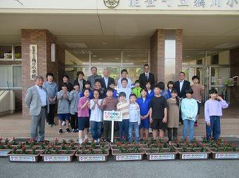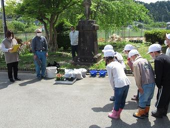 5月12日(金)、2・3年生の子ども達が植えたい野菜の苗を希望し、能登町農業振興協議会、能登町農林水産課の方々のご協力を得て、農業体験学習を実施しました。野菜作りの名人、河原さんにご指導していただきました。植えた野菜の苗は、キュウリ、トマト、ピーマン、なす、さつまいもです。にんじんの種もまきました。「おいしくなあれ。おいしくなあれ。」とやさしく水をかけました。