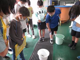 7月6日(木)、みおろしの浜にヒラメを放流しました。学校でえさをあげながら、成長の様子を楽しみにしていた4年生。ヒラメの元気がちょっとなくなったり、水が濁ったりして、育てることの大変さも実感しました。お世話いただいた水産総合センターの皆様、本当に有り難うございました。