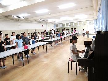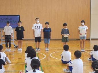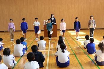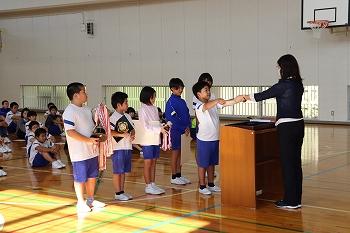 10月11日(水)、うかわっ子集会がありました。元気よく校歌を歌いました。また、後期児童委員会の任命式、表