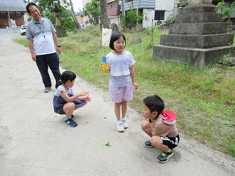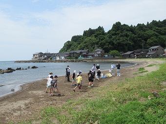 6月8日(木)、1年生が町へ出かけました。自分たちで考えた遊びを楽しみました。緑が美しい公民館近くで、だるまさんがころんだや宝探しもしました。みおろしの浜はとっても気持ちが良かったです。鵜川の町の良さを再発見しました。