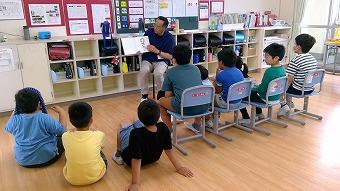 7月10日(月)、読み聞かせがありました。給食の準備をしている間、当番ではない児童は、ランチルーム前で静かに待っていることになっています。その間、大隅先生がいろいろな分野の読み聞かせを行っています。今度はどんな本かな・・・楽しみです。