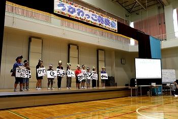 9月29日(金)、うかわっ子発表会がありました。全校児童で「チャレンジ!」の歌、1年生は国語の学習「おむすびころりん」をアレンジした音読劇、2・3年生は鵜川の町のすてきなところや社会学習したことをまとめたもの、4~6年生は海洋教育の学びを発表しました。精一杯頑張る姿が見られました。ご参観いただき有り難うございました。