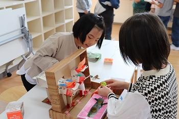 10月13日(金)、2年生は、生活科で”おもちゃランド”作りに取り組みました。”おもちゃランドへようこそ”と、全校児童を招待しました。思い思いに工夫をこらした”おもちゃランド”は大盛況です。作る楽しさ、遊ぶ楽しさを実感したひとときでした。