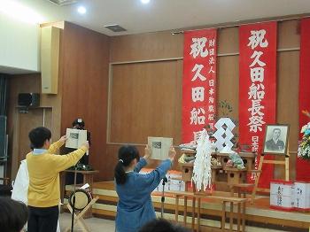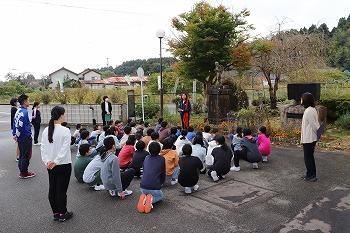 10月27日(金)、鵜川公民館で久田船長碑前祭が行われました。5・6年生は唱歌「久田船長」を堂々と歌い上げました。また、5年生代表が久田船長にまつわる国定教科書の一部を朗読、6年生代表が玉串を捧げました。人を思いやる心、船長としてなすべきことをやりとげたいという思いを感じとることができました。