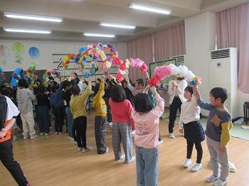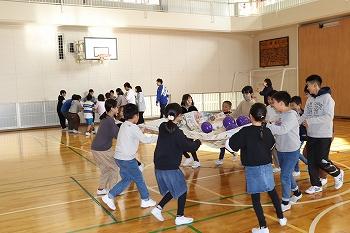 12月8日(金)、Uふれタイムがありました。うかわっ子みんなが楽しいあったかい気持ちになれるようにという思いで代表委員会が企画しました。縦割り班ごとに手をつなぎ、丸い輪になって、フラフープを通したり、風船をわらないように、そーっと運んだりしました。みんなの”にっこり”が見られました。
