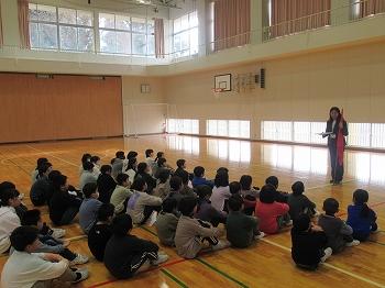 12月12日(火)、特別の教科道徳の時間に、公民館主事の鍋谷さんをゲストティチャーにお迎えし、ふるさとに対する思いをきくことができました。今、残っているものを大切にしていってほしい。また、これからも素敵な町自慢をみつけていってほしいという願いが、1年生の心に響きました。有り難うございました。