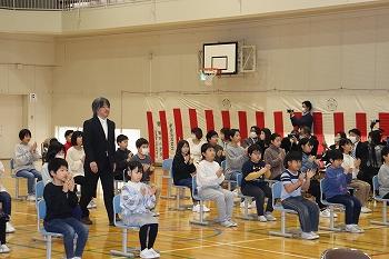 4月6日。令和5年度の入学式が行われました。3名の新入生を迎え,全校52名の鵜川小学校がスタートをきりました。呼名すると,「はい。」と元気よくこたえることができました。よいこの姿として「よ」は,よいと思うことをどんどんすること,「い」は,命を大切にすること,「こ」は,心を大切にすることを約束しました。いろいろなことにチャレンジし,楽しい学校生活にしていきましょう。