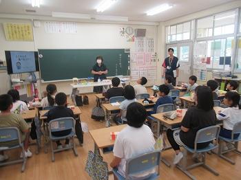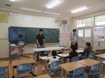 9月5日(木)、今日は3~6年生が海洋教育の学習をしました。5・6年生は1・2限目に東海大学の先生と学生の方から「深海の世界」ということで、前半は「しんかい6500」での潜水観察の様子を教えていただきました。また、後半は水圧や深海の生き物の色についての実験を行いました。日本の領海には大きな可能性を持った宝物がいっぱいあることや深海魚や魚の色の意味などについて学習することができました。