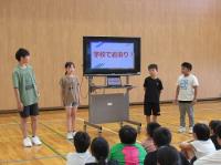 7月10日(水)は、うかわっ子集会と防犯教室がありました。うかわっ子集会では、代表委員会の発表の後、生活委員会からは熱中症のクイズが、給食委員会からは給食マナーの劇の発表がありました。委員会の発表は、毎回工夫を凝らした内容です。